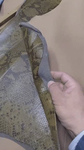 Descubre nuestra exclusiva piel de curtido de ternera grabada, ahora con cuero acolchado y forro incluido, ideal para brindar mayor consistencia, volumen y protección gracias a la espuma con forro que incorpora el material. Su acabado estampado en verde militar con forro no solo aporta un estilo moderno y audaz, sino también un tacto y estructura que marcan la diferencia.