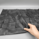 Este cuero tipo collage en las medidas de 60x50 cm está compuesto por rectángulos de retales de cuero cuidadosamente unidos sobre una base textil, creando una superficie rica en textura y matices. Los tonos negros y marrones se combinan de forma natural, aportando profundidad y un carácter muy artesanal 🖤🤎.