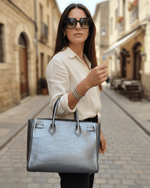 Este cuero de medidas aproximadas de 60 x 60 cm y grosor de 1 mm, destaca por su gran calidad , su flexibilidad y su tacto agradable, ideal para trabajar cómodamente y obtener un acabado profesional. Su brillo sutil en tono plata azulado lo hace perfecto para: