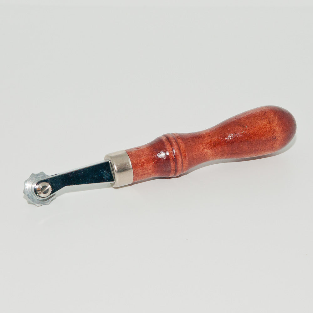 Marking roulette with wooden handle and stainless steel tool.
