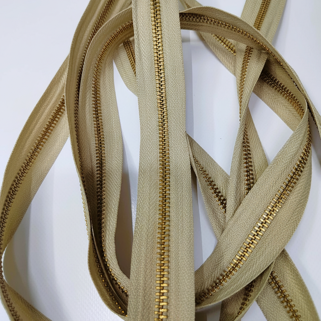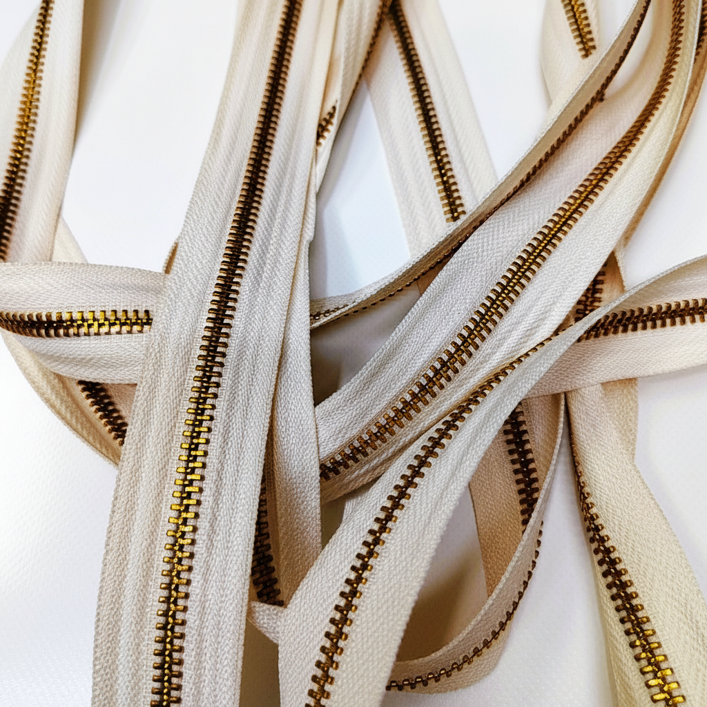 High quality zipper, YKK brand, made of brass, does not rust. Ideal for sewing by machine or by hand.