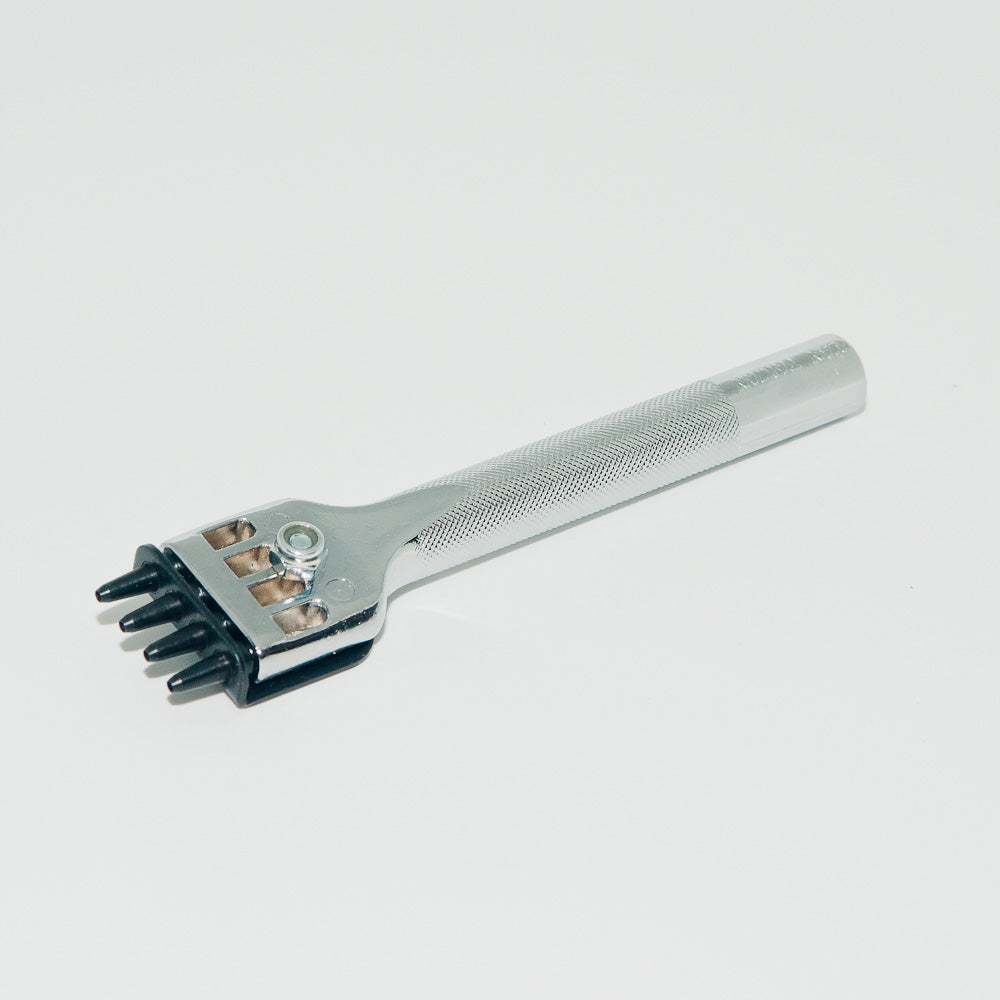 Matrice de poinçonnage avec 4 buses pour réaliser des trous de 1,5 mm. Idéal pour passer du fil à coudre de 0,6 mm à 1 mm. Parfait pour l'artisanat.